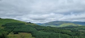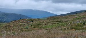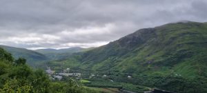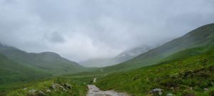 We headed out from Kinlochleven up the steep path which took us up on to today’s route. It was amazing to look back towards Kinlochleven and see how much height we had gained so quickly. We then followed the trail across open land with stunning views. The weather was a bit different to when we left home yesterday with a cool breeze, clouds and even some rain! We continued on the old military road, which was a really good path past an interesting ruined croft called Tigh-na-sleubhaich .