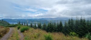 As has become a regular start to recent days, this morning began with a very steep climb. This time we saw lots of clouds and mist and also a stunning view of Loch Ness! We quickly climbed to 1,000ft on good forest tracks and footpaths with more views of the loch. The views of the hills and mountains on the other side of the loch were also incredibly picturesque. It felt like a real privilege to be so high up looking down on such wonderful views.