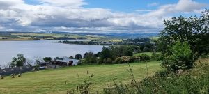 Today started with a short walk along an A road with plenty of wide verges. This took us over The River Conan where we saw Salmon leaping in this magnificent river. From here we quickly joined the much quieter roads which are designated cycle routes. We hardly saw any cyclists though! This road was extremely quiet and gave us our first glimpses of the stunning Cromarty Firth. These glimpses soon became constant and we walked with beautiful views of  the sea for many miles. The bridge across was a particular highlight, it measures 1464 metres and has certainly reduced journey times from Inverness to the far North of Scotland. We could also see Oil Rigs, apparently these are brought in to this area for things such as maintenance or decommissioning. Alongside these were also cruise ships going into Invergordon. It definitely made for an interesting walk. Beyond Cromarty Firth we also had wonderful views of the area known as The Black Isle.