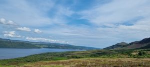 There were a few remote houses dotted about which seem to be crofts. We saw our first view completely out to sea when we could see The Moray Firth in the distance. This was a lovely stop for our morning break! However, the best scenery  was still to come when we reached Cadha Mor with it’s breathtaking views over Dornoch Firth. The locals call this Million Dollar View, we can certainly see why. A perfect lunch stop!