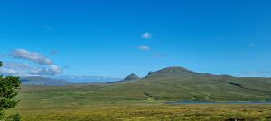 We rejoined the A836 for our final full day of walking Northwards, before heading East tomorrow. The views continued to be as spectacular as yesterday and we were lucky the sun was, once again, shining. The blue sky was only broken up by the perfect white clouds with their shadows moving across the landscape.