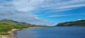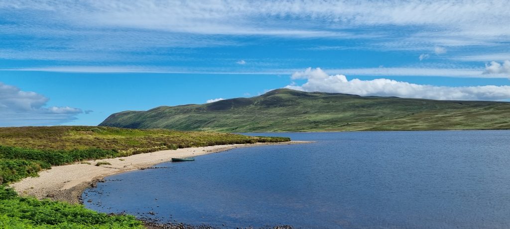 We soon came to Inchkinloch Bridge and crossed Lon Achadh na h-Aibhne. There was a very old small building and sheep fold nearby. The first constructions we have seen for many miles! We then quickly came to the very beautiful Loch Loyal. This loch is four miles long and half a mile wide. At this time of year it is also home to rare black-throated divers. The road followed the loch for it’s entire length, certainly one of the most picturesque roads we have ever been on!