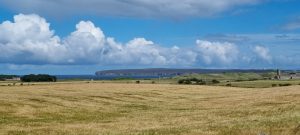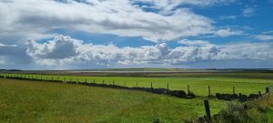 It was great to see a sign for John O’Groats as we set off. After a short time on a fairly busy road with wide verges we were soon in Castletown known as Flagstone Town! From Castletown we spent the rest of the route on extremely quiet rural roads. This was a day of huge farms with sheep and cows. We also saw evidence of a flagstone wall. We’ve seen quite a few of these recently. Wondering what Maurice and Robin who we met when they were building a drystone wall would make of these?